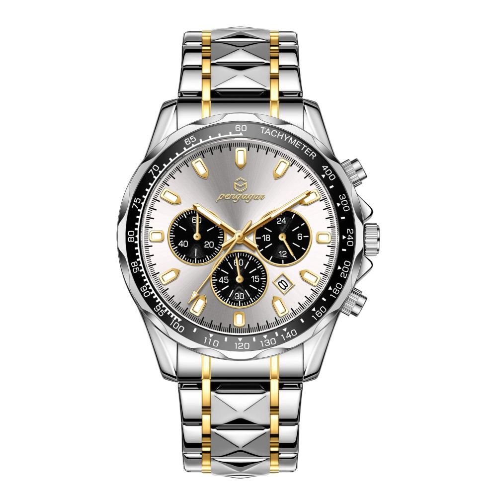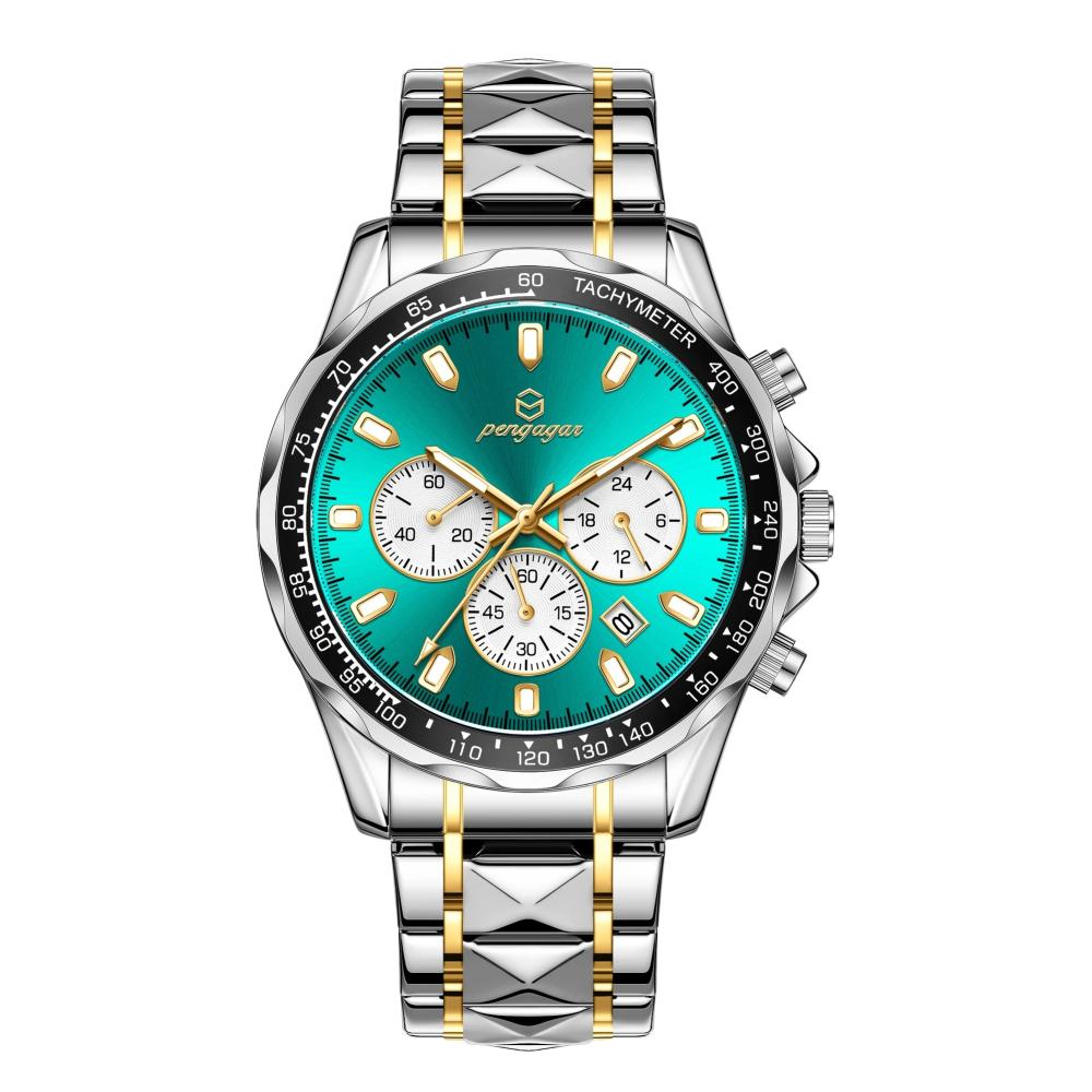 ساعة فاخرة للرجال تتميز بمقاومتها للماء وتصميم عملي يعرض التاريخ وأيام الأسبوع بوضوح، تجمع بين الأسلوب العصري والمتانة لتناسب جميع أنماط الحياة اليومية والرسمية.