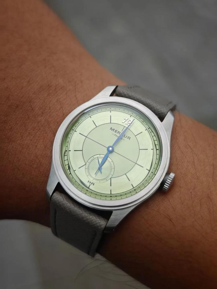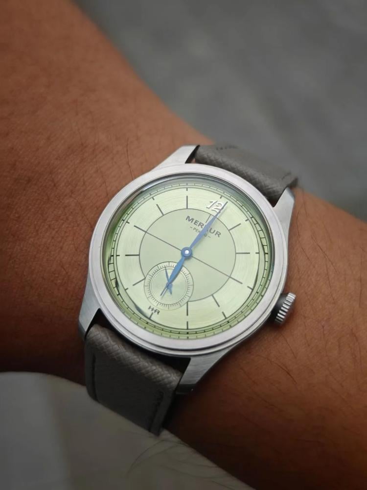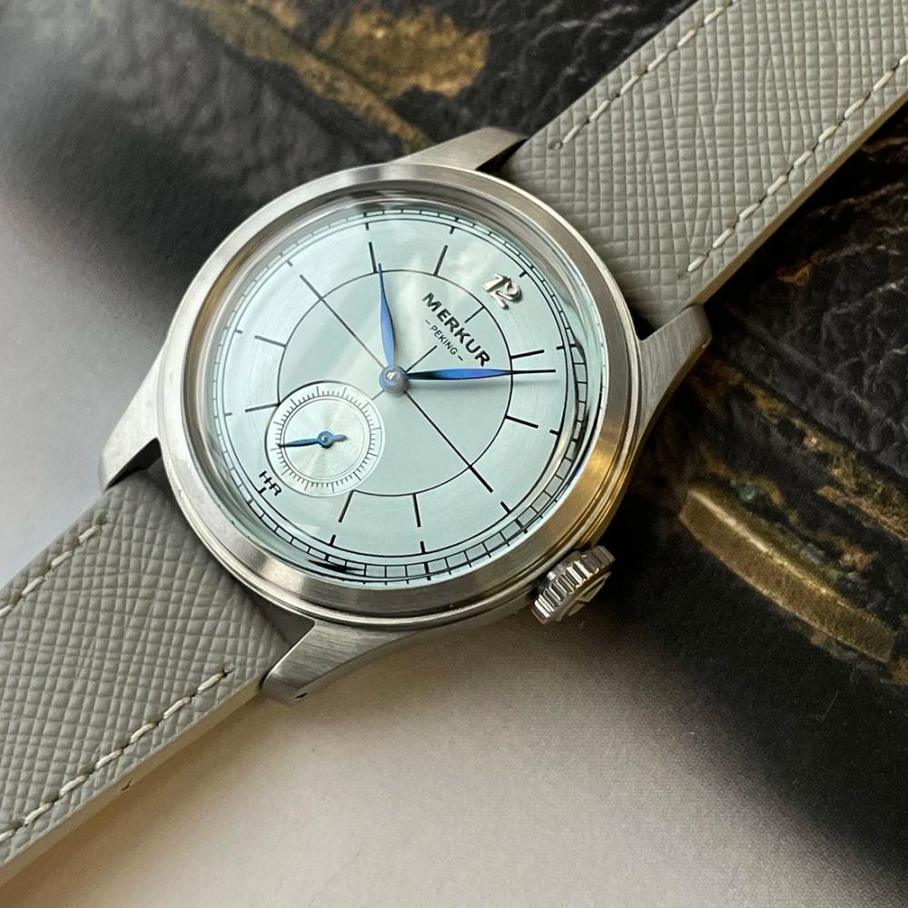 ساعة Merkur جلد مقاومة للخدوش بفضل الزجاج المتين الذي يحافظ على وضوح الساعة